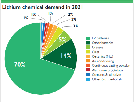 في المقام الأول في البطاريات القابلة لإعادة الشحن، والسبائك الخفيفة، وشحوم التشحيم، والمستحضرات الصيدلانية.